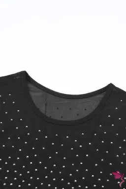 Bodysuit . Black Rhinestone Embellished Mesh Long Sleeve Bodysuit.