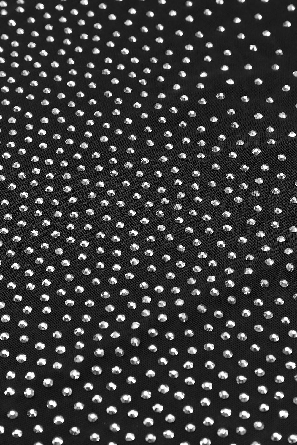 Long Sleeve Bodysuit . Black Rhinestone Embellished Mesh