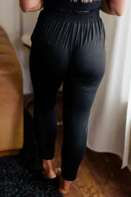 Pants . Black Plus Size Frill High Waist Pocketed Soft Pants