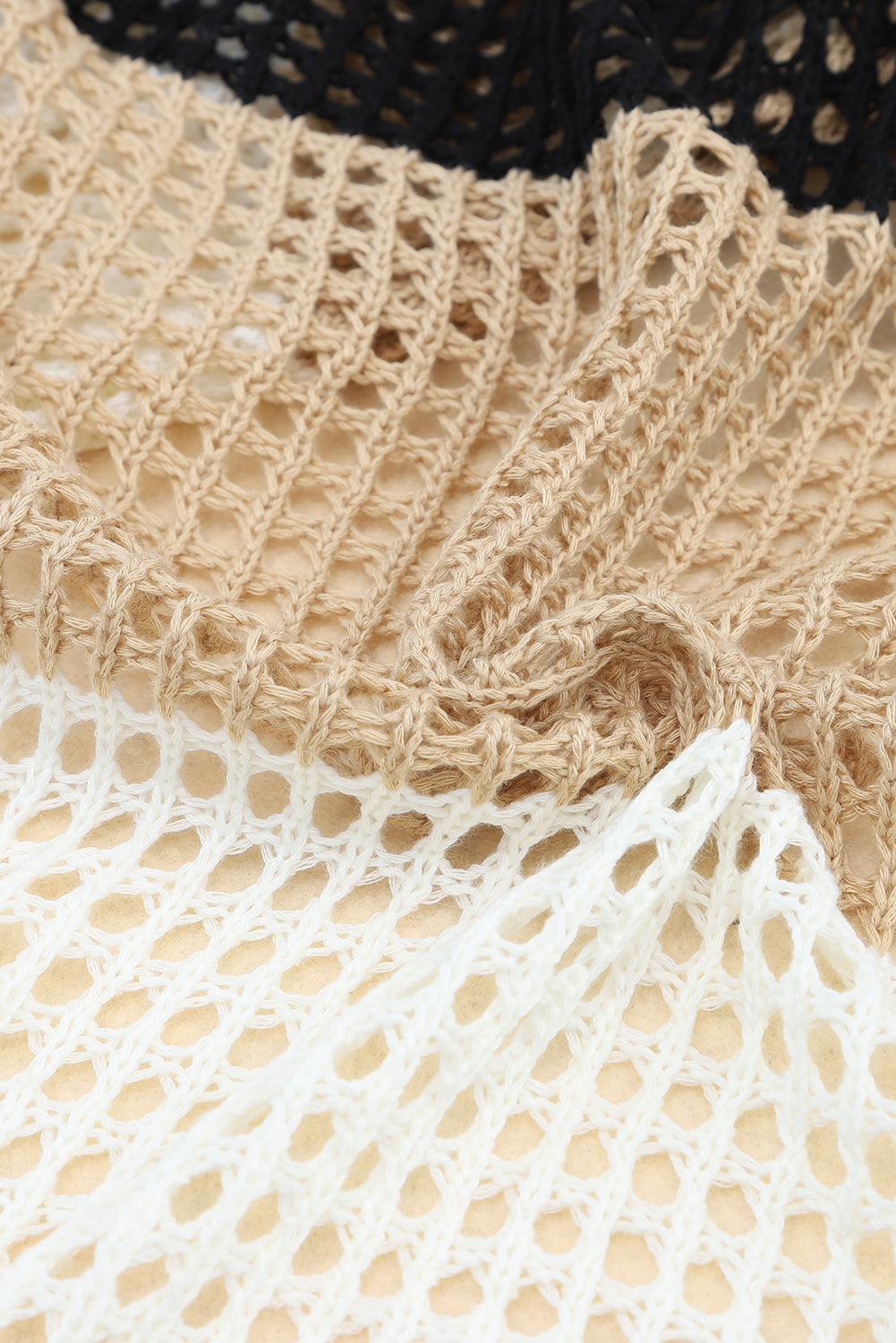 Top . Black Color Block Eyelet Long Sleeve Twisted Back Knit Top