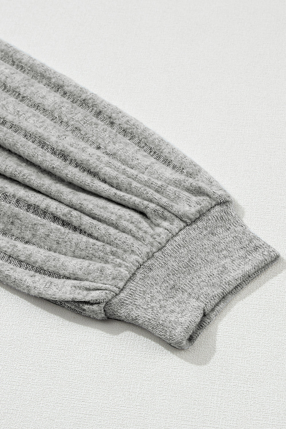 Top . Light Grey Buttoned V Neck Ribbed Puff Sleeve Top
